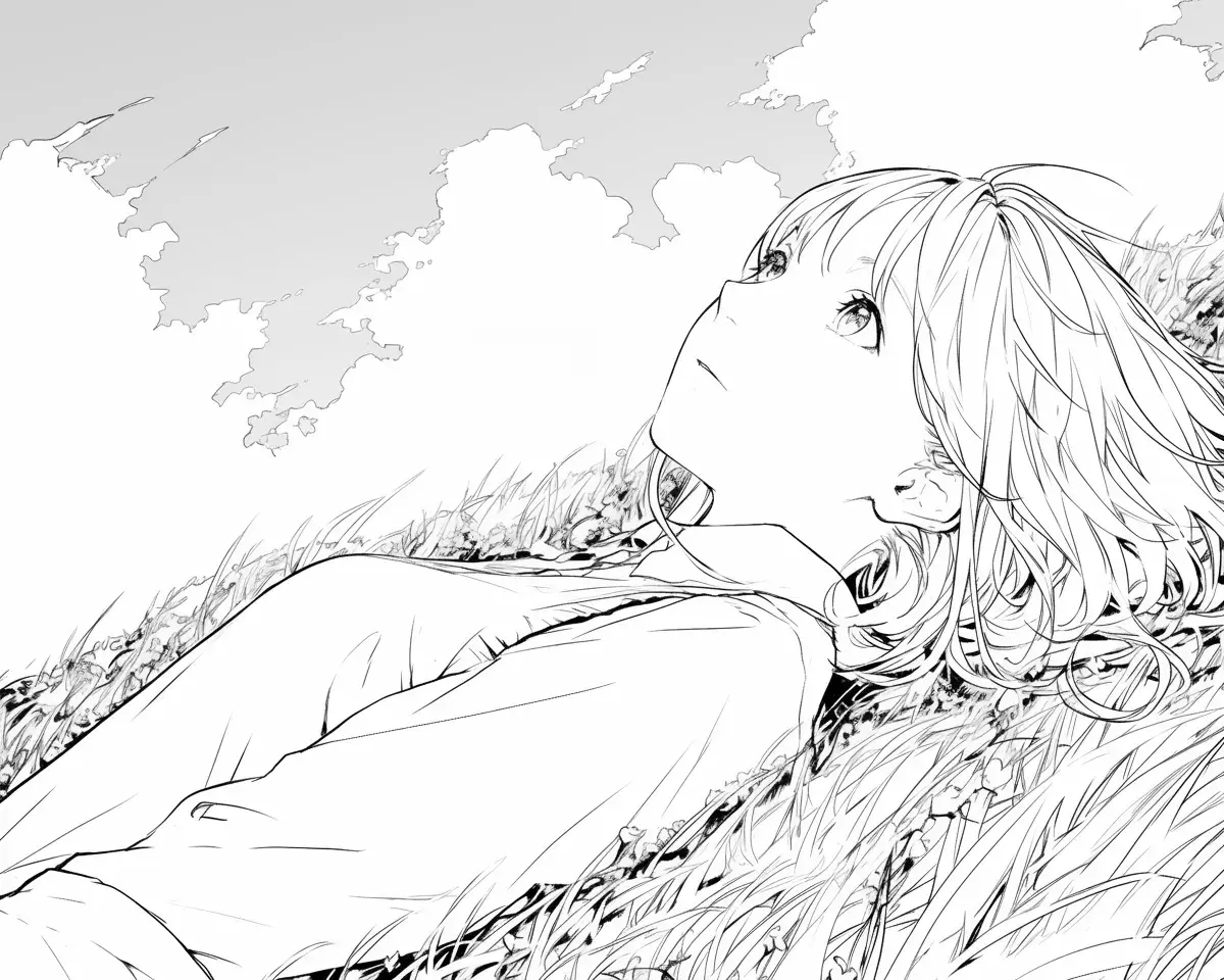 在草地上仰望天空的女孩