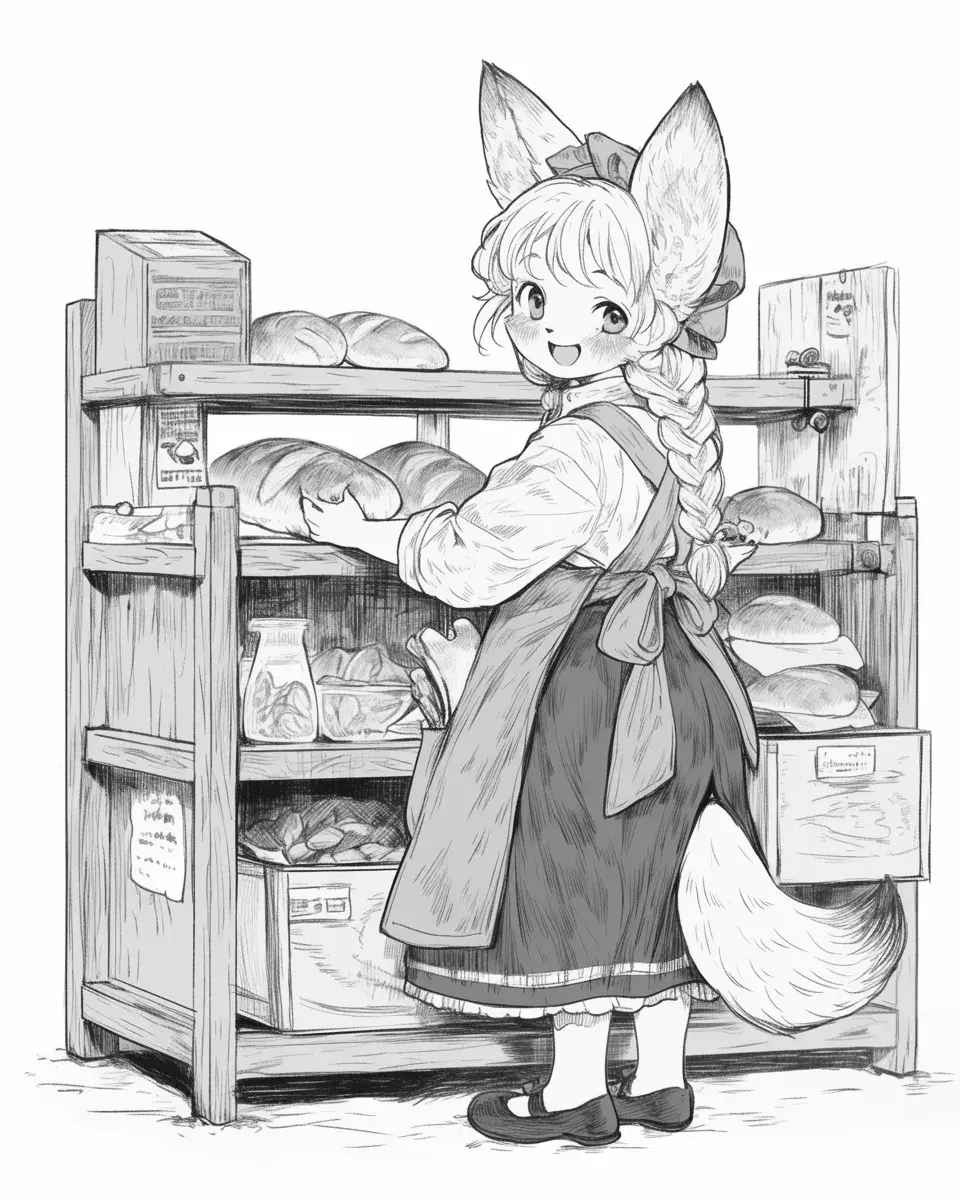 抱着面包的狐狸女孩
